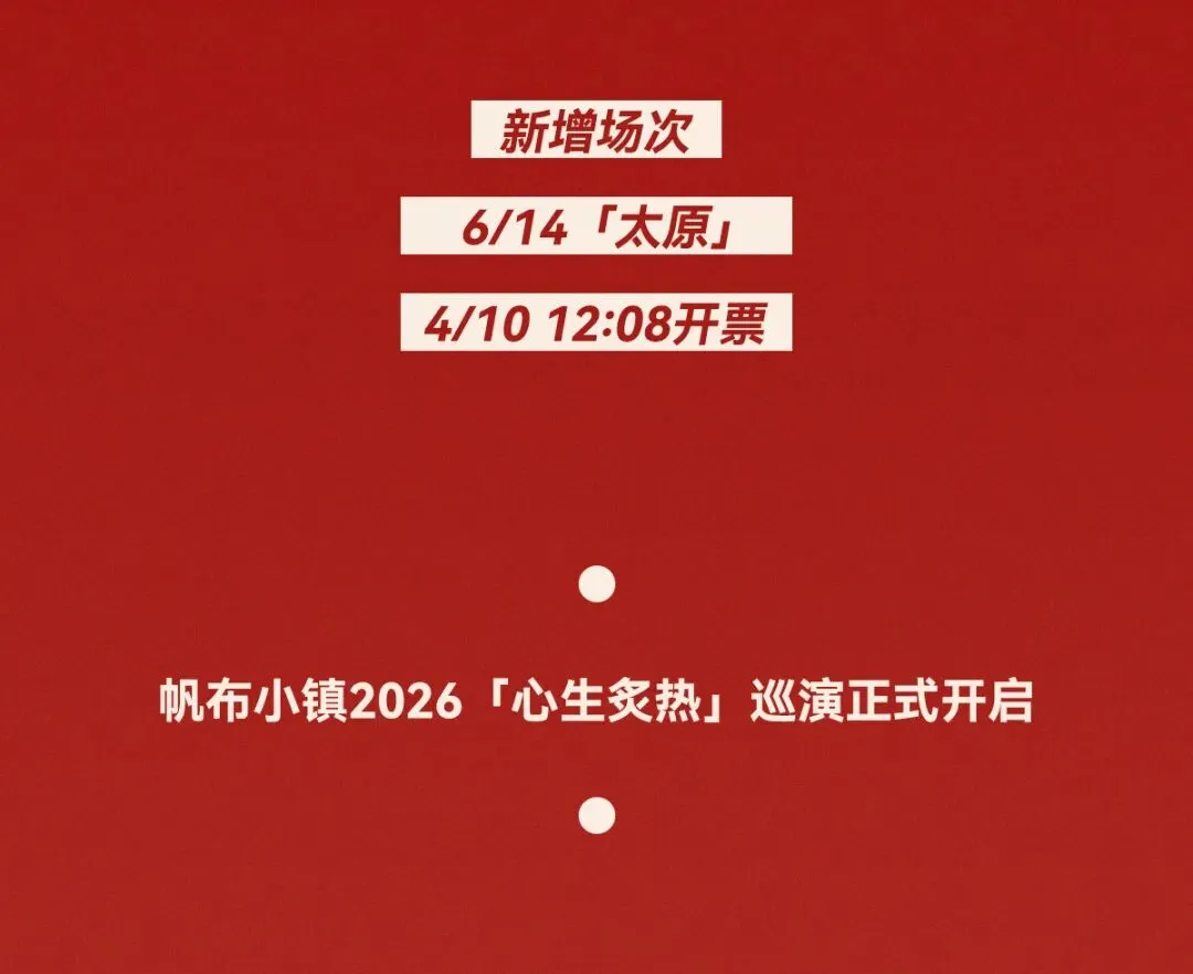 >帆布小镇新增「6.14太原站」04/10 12:08开票