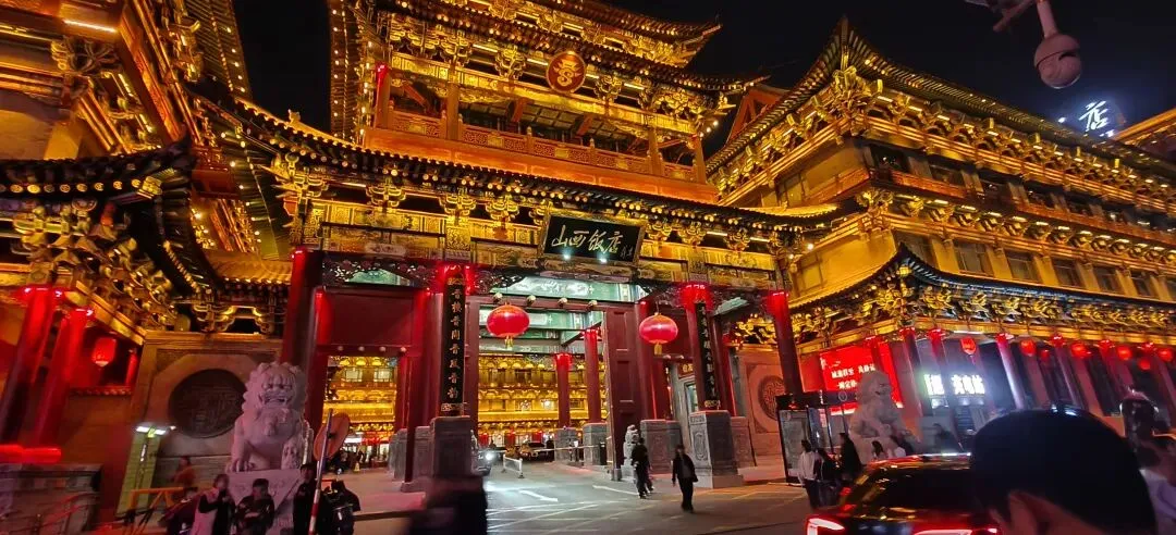 从公园出来,转身便跌入了柳巷的滚滚红尘。霓虹闪烁,车水马龙,这里是太原最繁华的商业街。柳巷的名字相传源于明朝。据说大将常遇春化装入城时被元军追杀,得一位姓柳的妇人相救。为报恩情,常遇春让柳氏在门上插柳枝以避战火。战后,人们为了纪念她,便将这条街称为“柳巷”。如今,“柳巷”这名字已成繁华的代名词。漫步街头,竟偶遇了熟悉的“赵一鸣”零食店。这种在旅途中邂逅“老相识”的惊喜,瞬间拉近了人与城的距离。路过一家服装城,永高兄说,来到太原,去买件衣服吧,于是在导购员的建议下,他兴致勃勃地买了一件“老人头”品牌外套。换上新衣,他满是欢喜。