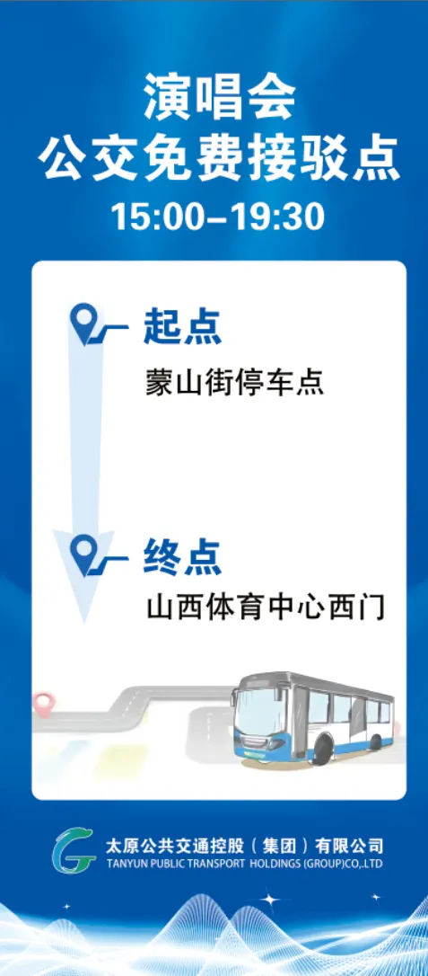 演唱会开始前,开通5条由市区、2条由临时停车点至山西体育中心共计7条公交免费接驳专线,以及1条由地铁站直达体育中心南门的公交线路。