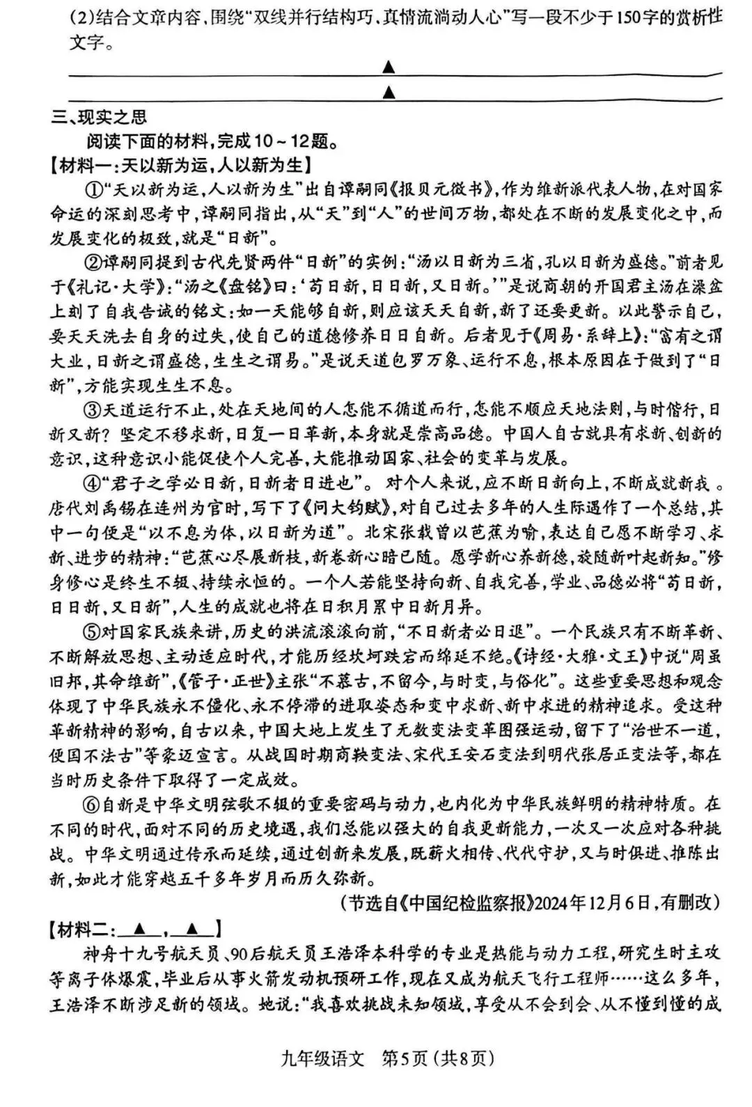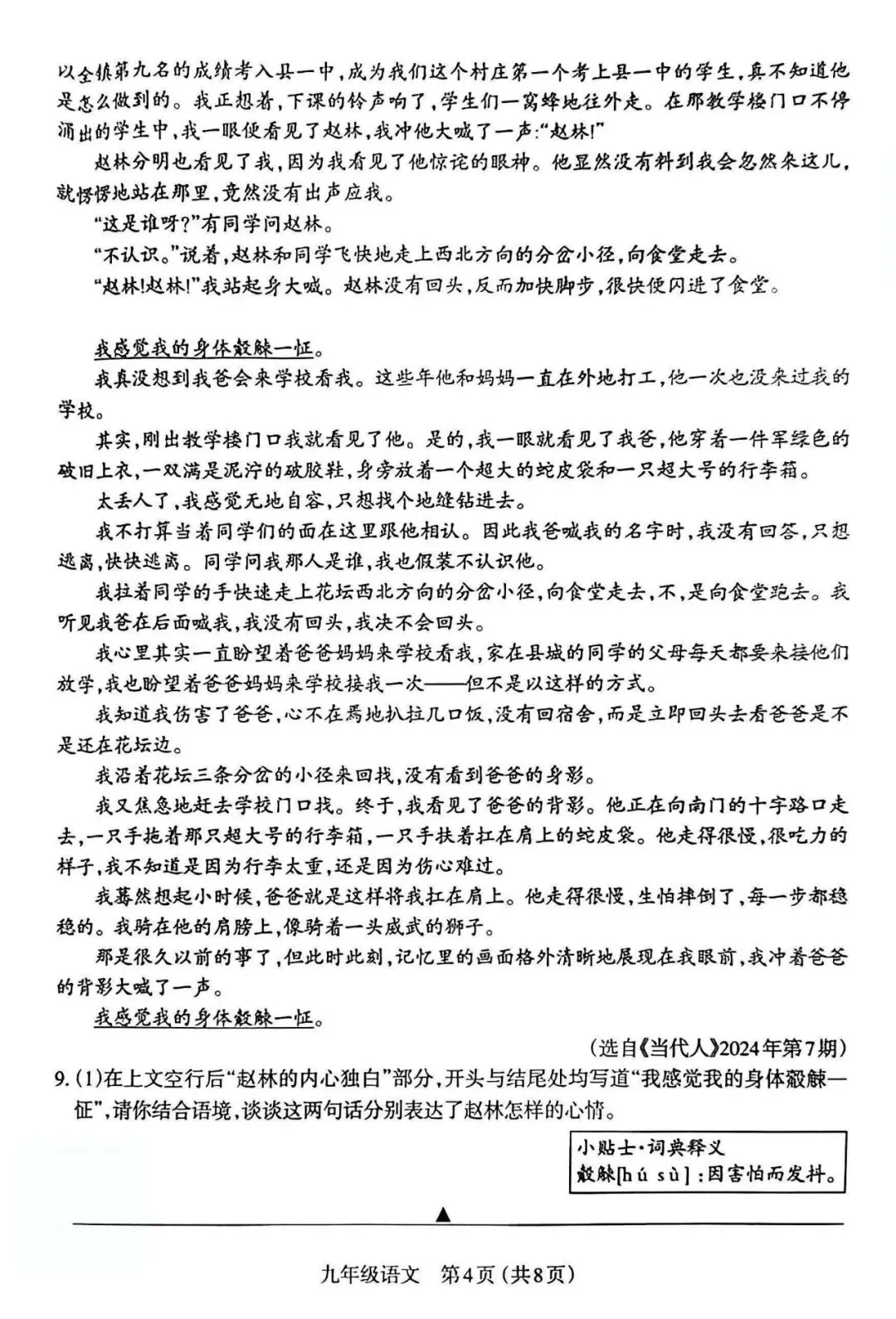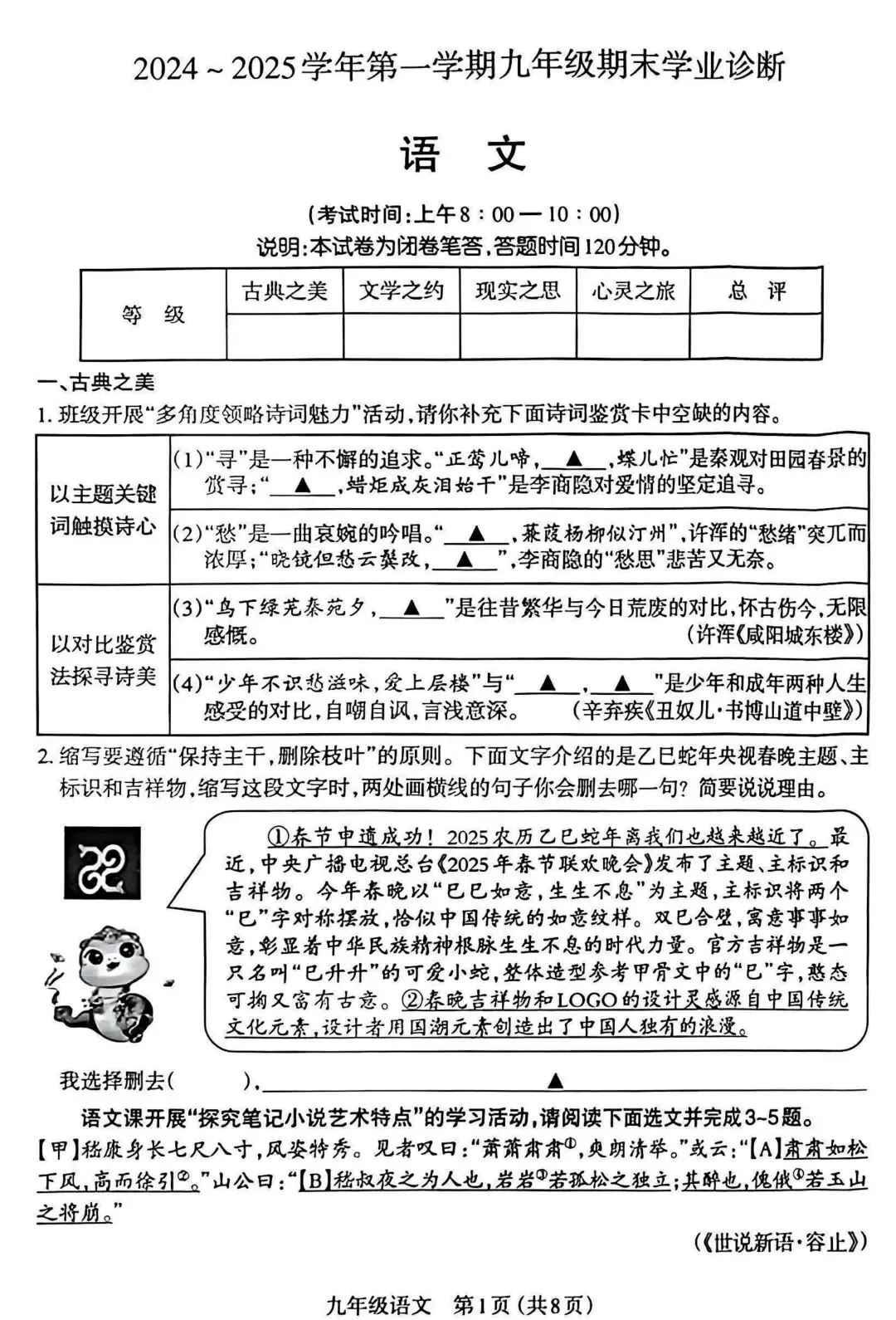 本次为大家准备了太原市2024-2025学年第一学期九年级期末学业诊断卷。以语文为例,以及配套的答案解析。供大家下载学习。