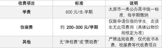 性价比:一年学费+住宿费仅1200元,在太原市高中里属于极低水平。