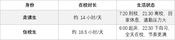 走读生与住校生之间的差别如下: