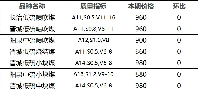 4.市场价格主要为中国太原煤炭交易网自动成交交易价格,个别为企业报价(坑口含税)。