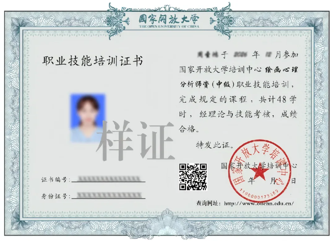 绘画心理技术应用于自身家庭亦可作为一项新职业技能,让您终身受益。通过相应培训并参与考核合格者,可获得由国家开放大学颁发的证书。