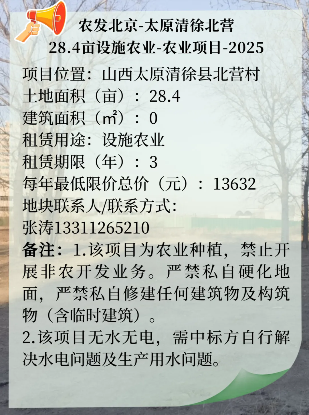 场次名称:农发北京-晋农业、非农项目RTPT016-2026