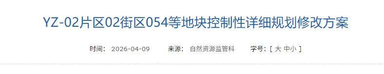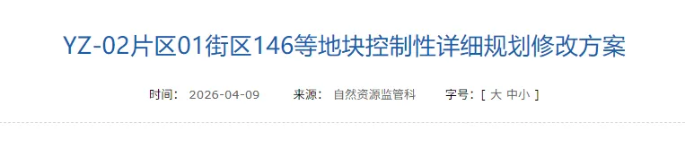 2026年4月9日,太原市规划和自然资源局公示了两份控制性详细规划修改方案,分别涉及YZ-02片区01街区146等地块和02街区054等地块。