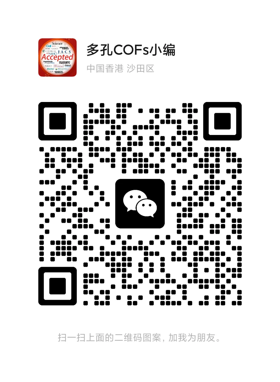 我们建立了COFs和MOFs的交流群,感兴趣的老师和同学可以添加我微信,我邀请您进群。