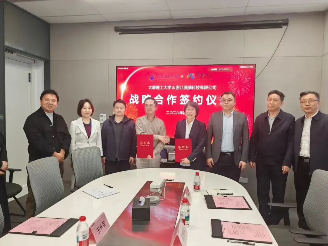 2026年4月2日下午,太原理工大学与强脑科技集团有限公司在杭州正式签署战略合作协议,深度合作共推脑机接口与智能机器人技术新未来。强脑科技集团副总裁杨承君、首席科学家周俊、合作营销总监奉伟辉,太原理工大学学术副校长杨晓伟、国内交流合作办公室、机器人科学与工程学院负责人出席签约仪式并座谈。