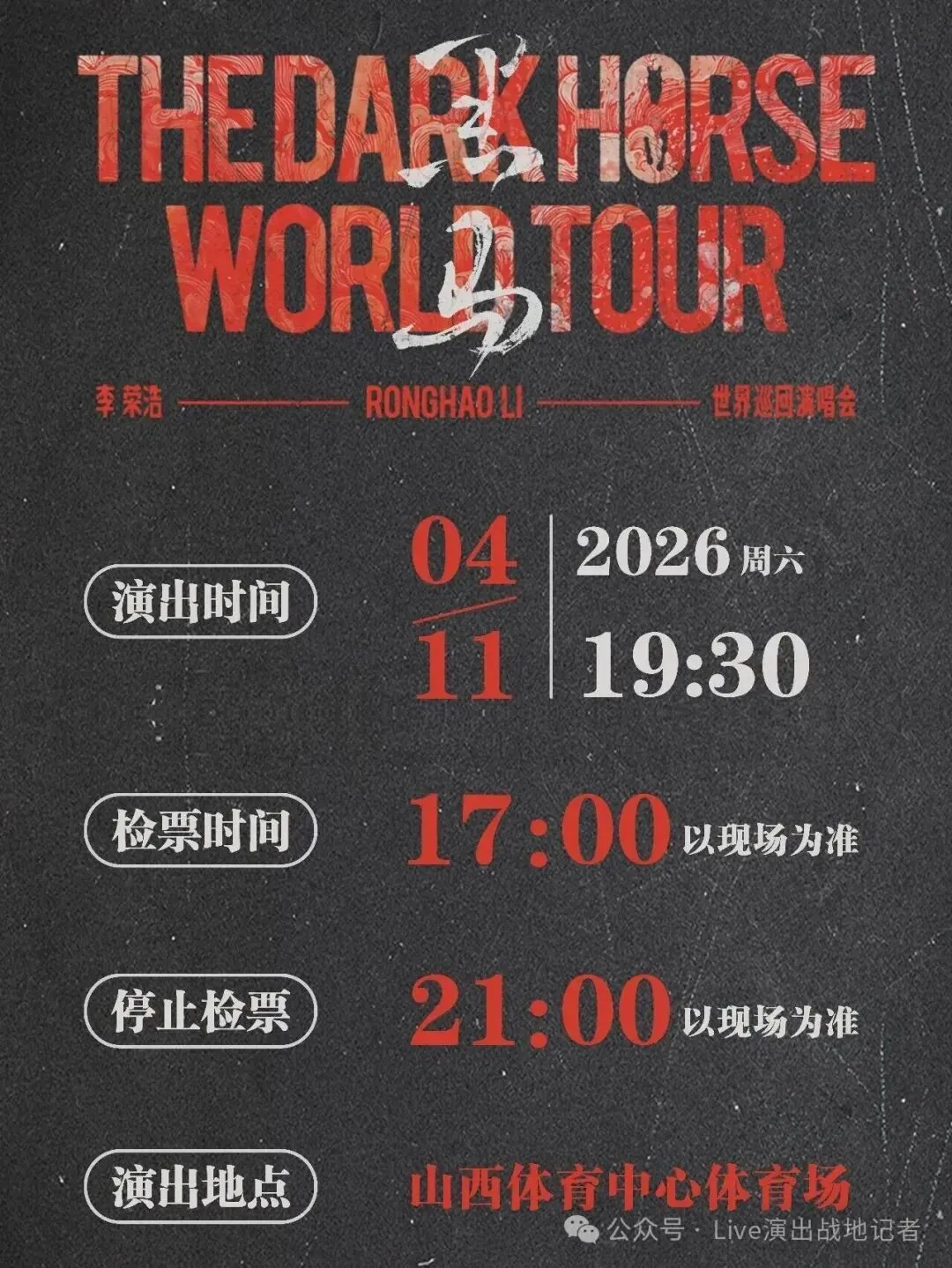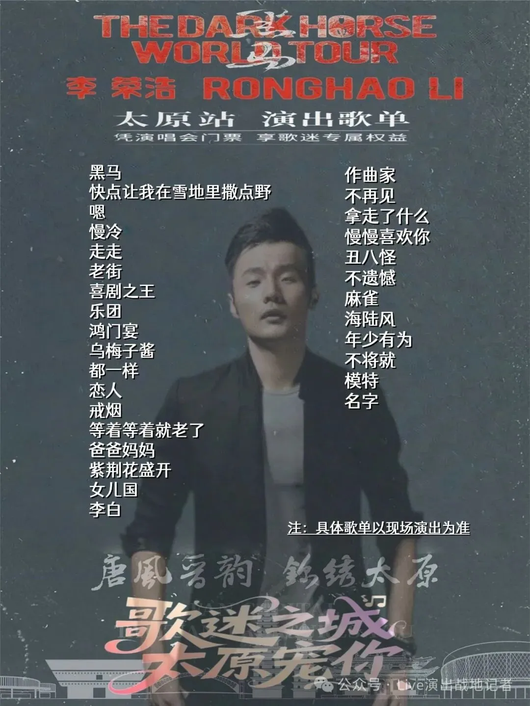 >李荣浩黑马世界巡回演唱会太原站|演出攻略