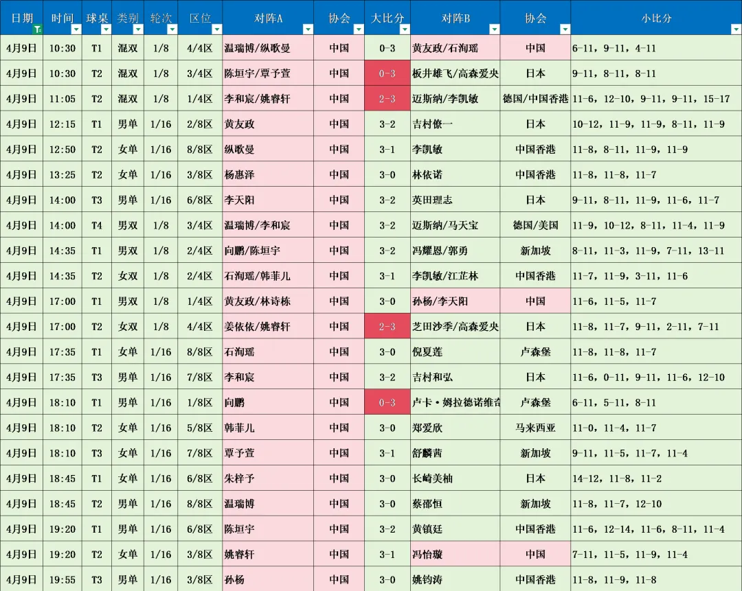 非专业球迷,纯个人向记录,对运动员有偏爱,不喜请出门,谢谢!每年的WTT常规挑战赛太原站就是国乒大集合,在WTT自从2024年巴黎奥运会后赛事体系趋于完整后,核心主力和主力很少再参加这个级别的赛事,基本成为五大主力之外次主力、二线及年轻队员积累比赛经验的机会,尤其对于还在打青年赛或刚青年赛毕业的。而这类赛事里又能看到大量的特殊打法,不仅仅是国乒自己的,还有其他外协会的。所以我个人觉得这次太原常挑有点像国乒的特殊打法的小考,只是第一天战罢,成绩不太理想。前两天被推送宣传的姜依依(左)在资格赛赢了国乒的削球手,输给了40+的外协削球李洁(受韩莹、桥本帆乃香的影响再度出山,也是让削球手看到了机会);今天正赛国乒共22场比赛输了4场:3场混双1场内战消耗1组2场外战均负:陈垣宇/覃予萱0-3板井雄飞(左)/高森爱央(反手生胶)(日本)、李和宸(左)/姚睿轩被首次组合的跨国组合迈斯纳(左)/李凯敏让2追三(迈斯纳在德国队内主攻双打);混双8强只剩1对国乒组合;女双:姜依依(左)/姚睿轩2-3芝田沙季/高森爱央(反手生胶)(日本)男单:向鹏正赛首轮0-3输给了卢森堡的卢卡·姆拉德诺维奇,这是个男线更为少见的防弧打法,所以正手好并不天然的会打特殊打法。男线单打特殊打法削球、颗粒很难打到冠军赛的参赛资格,但如今在设立双打世界杯、奥运会双打比重加大后,双打里利用特殊打法杀生是一种外协会尝试的组合,毕竟男选手对于特殊打法不太适应,那么无论混双还是男双,未尝不能突突一下。比如东奥混双伊藤的生胶、巴奥朝鲜金琴英的长胶,多哈世乒赛温特/万远的双特殊打法爆冷3-2陈幸同/钱天一;日本女双的双削组合。这次国乒男双也组了双削,可惜第一轮就对上了林诗栋/黄友政。明天覃予萱VS李洁、姚睿轩VS桥本帆乃香、韩菲儿VS佐藤瞳三场削球考验,谁能通关呢?女单资格赛国乒8人晋级2人:杨惠泽(反手生胶,10)、冯怡璇(左,反手生胶,08)【4月7日-12日2026WTT常规挑战赛太原站国乒参赛名单变化】男单正赛:向鹏(03)、陈垣宇(05)、温瑞博(07)、黄友政(左,05)女单正赛:石洵瑶(01)、覃予萱(06)、纵歌曼(06)、韩菲儿(左,03)【男双正赛】林诗栋(05)/黄友政、温瑞博/李和宸、陈垣宇/向鹏 女单资格赛增加:杨惠泽(反手生胶,10)、刘子菱(11)、冯怡璇(左,反手生胶,08)、陈显畅(直板,10)、魏璟茗(削球,09)、王馨雅(08)、张予露(反手生胶,10)国乒最终参赛名单:男单正赛4人,资格赛1人;女单正赛4人、资格赛9人;女双正赛2对,资格赛1对;男双正赛3对;混双正赛2对,资格赛1对,共19人。男单主办方外卡:孙杨(削球)、李天阳(削球)、卡纳克贾哈(美国)女单主办方外卡:倪夏莲(左手长胶,卢森堡)、芝田沙季(日本)、朱梓予(削球)郭勇(新加坡)递补正赛,新增WTT提名:吉山僚一(日本);桥本帆乃香(日本)