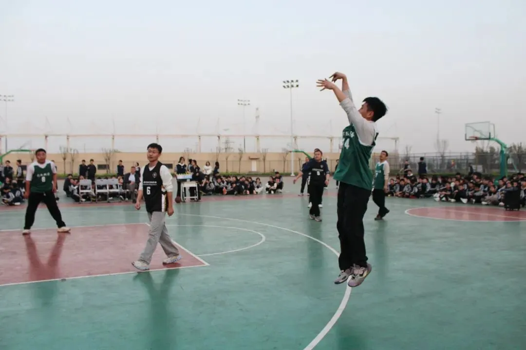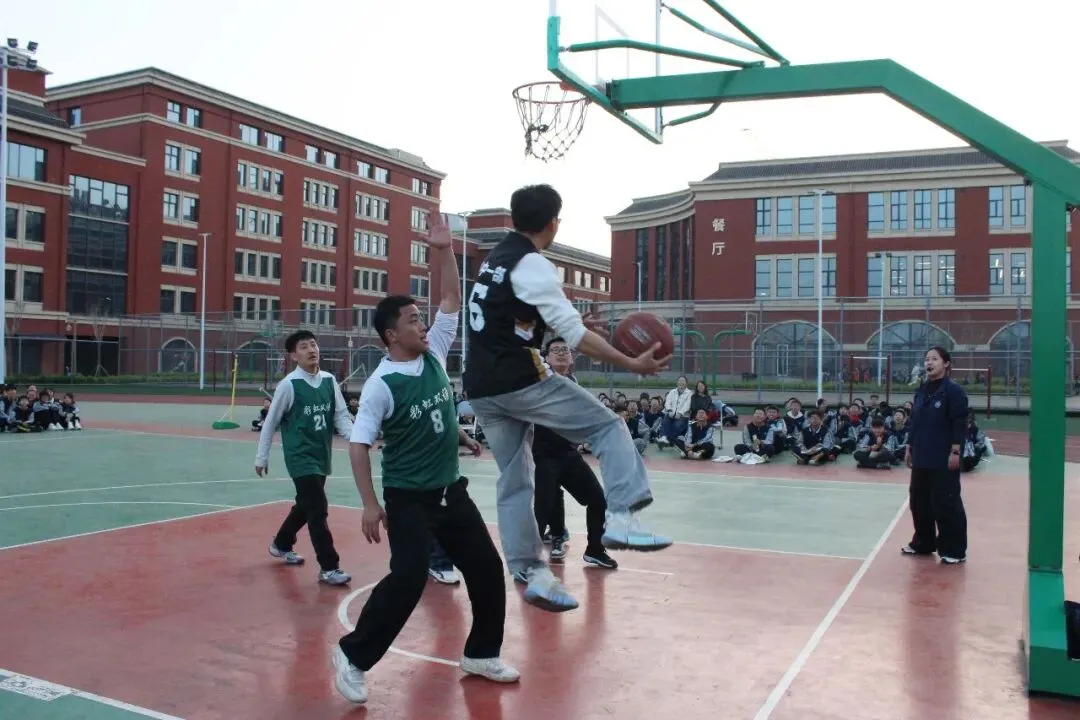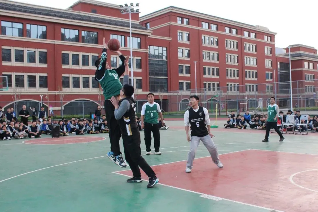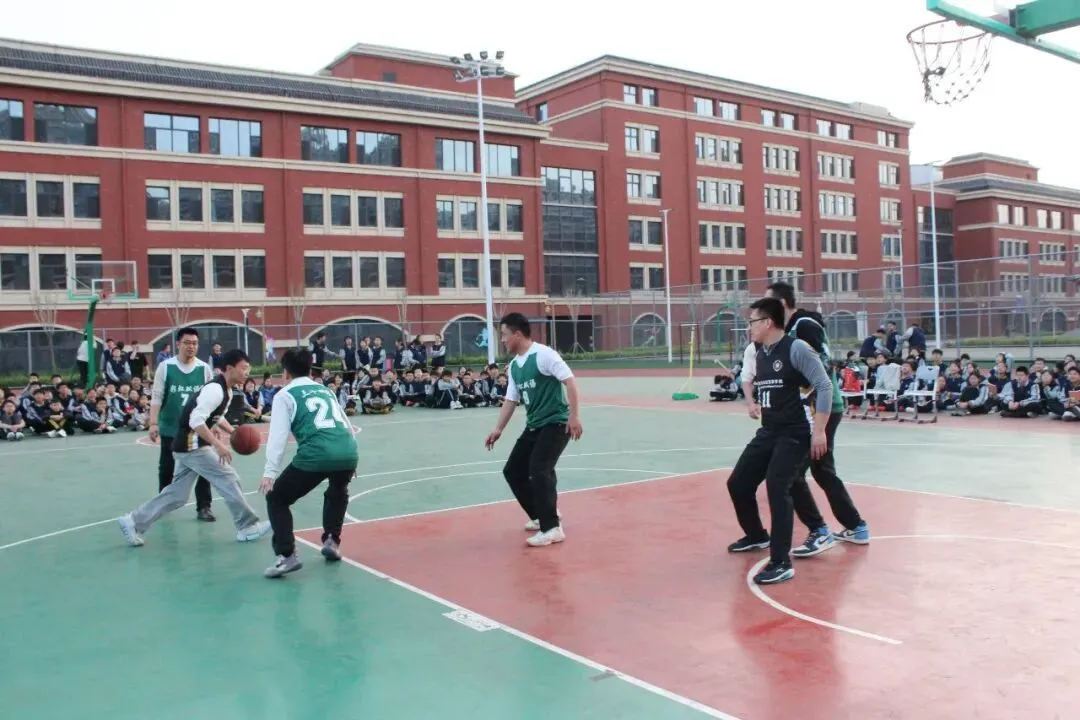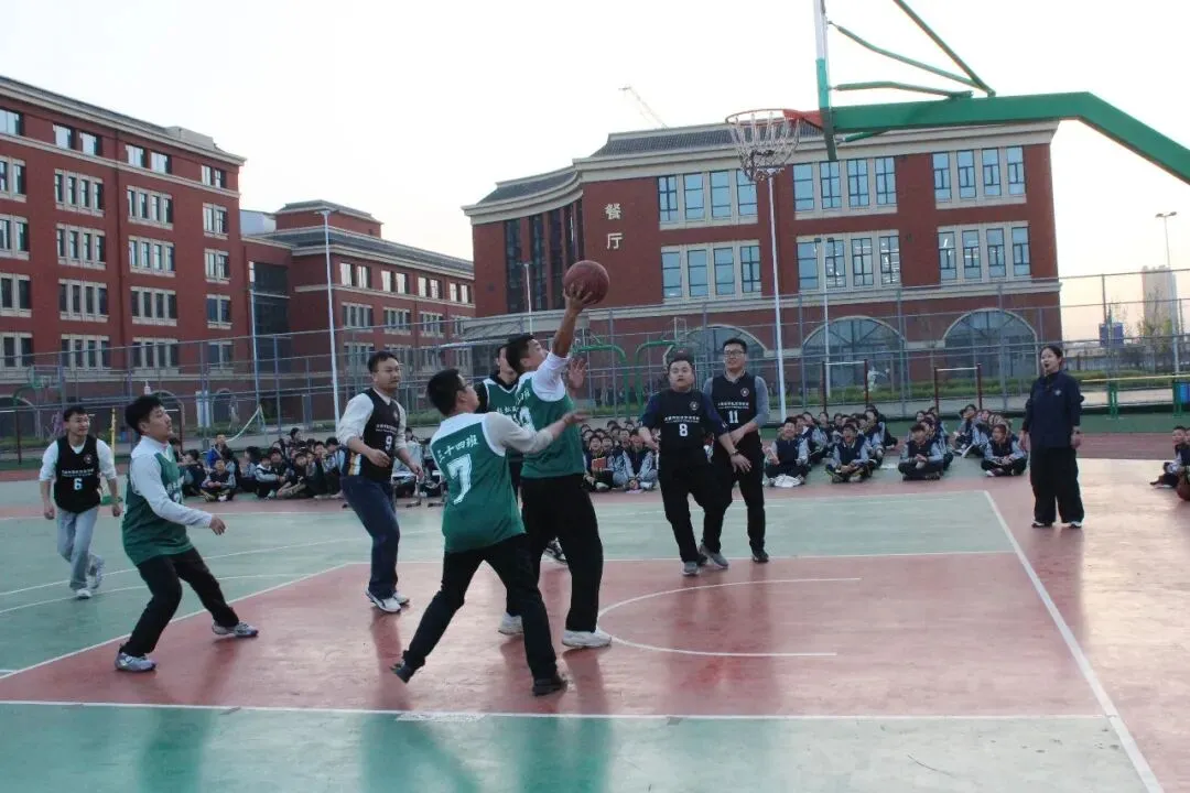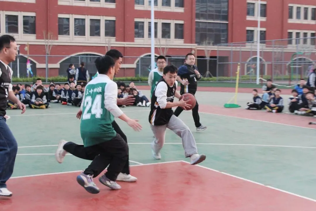 老教师沉稳老练,凭借丰富的经验卡位抢板、精准传球,用从容与果敢展现着师者的担当;青年教师活力四射,凭借敏捷的步伐突破防线、奋勇上篮,用激情与朝气诠释着青春的力量,恰如学校“老中青教师各展所长、协同成长”的师资建设理念。队员们有的巧妙虚晃、突破夹击,有的精准抢断、快速反击,有的纵身跃起、奋力封盖,每一次精彩表现都引来场边师生的阵阵欢呼与掌声。