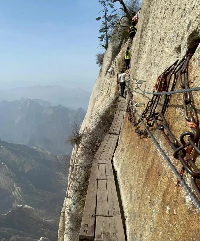 但华山这个地方就是这样,它不给你捷径,不让你取巧,你想上去,就得一步一步爬,没有第二条路,长空栈道那一段,木板搭在悬崖上,下面是万丈深渊,你踩上去,木板咯吱咯吱响,风一吹,人往外飘,这时候你才明白,什么叫天险,什么叫一夫当关万夫莫开,这个地方从古到今就是这个样子,谁来都得服气,谁来都得老老实实一步一步挪。