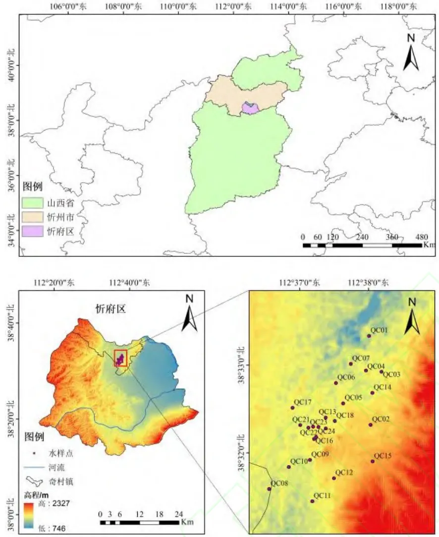 图1 研究区水样采集分布于奇村与南高村地热异常区