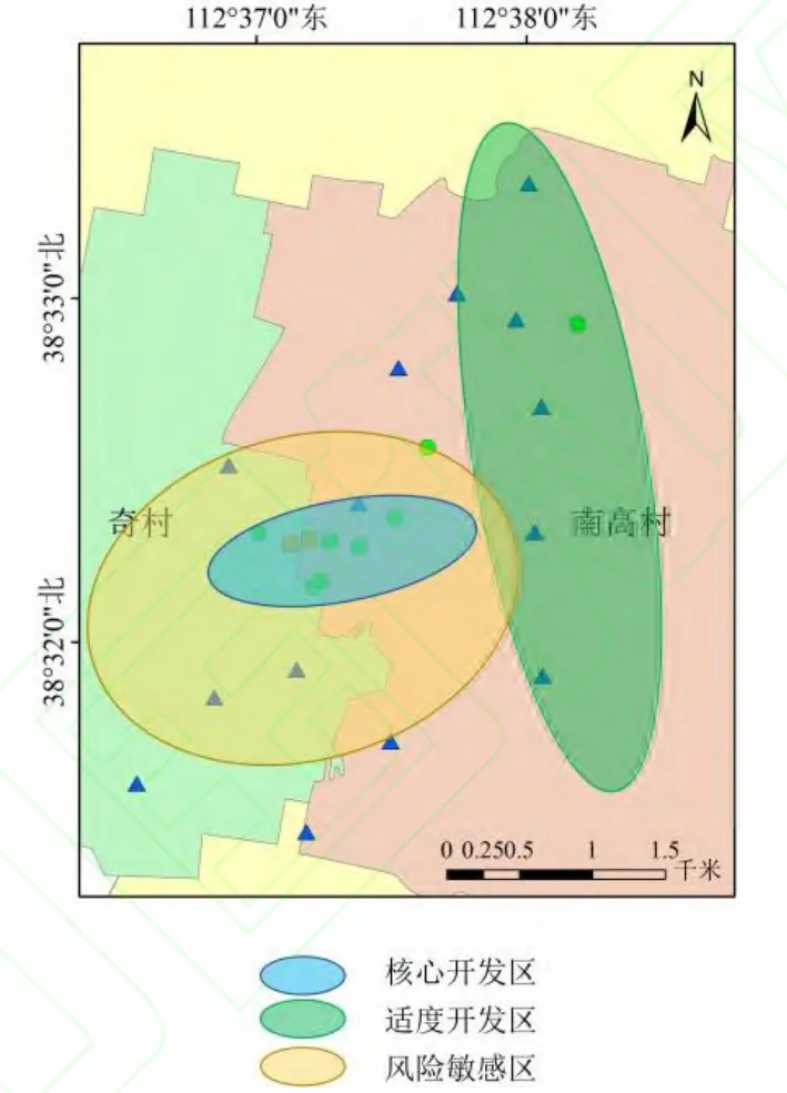 (4) 奇村地热区具备中低温水热型开发基础。建议按井类分区开发:C3稳定供热(集中供暖+温泉),C2调峰补热(低温利用),C1限采预警(水质扰动监测)。需以科学开采规模、回灌制度与污染敏感区分区管理为前提,实现可持续开发。