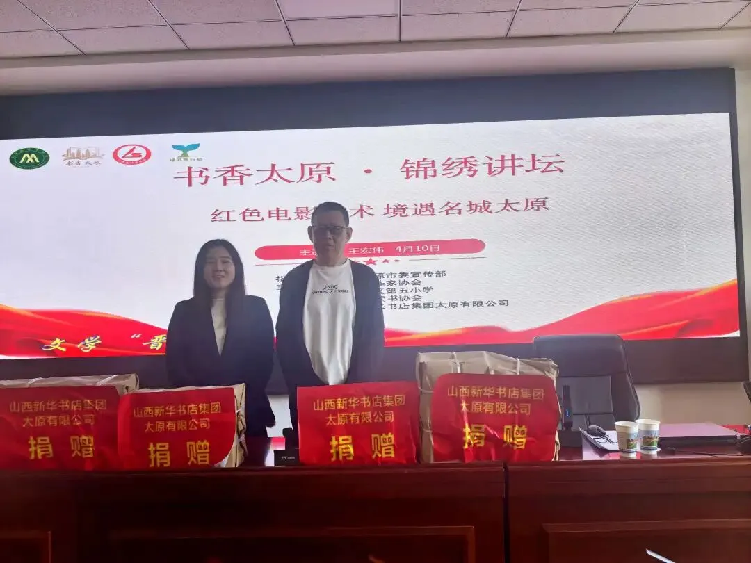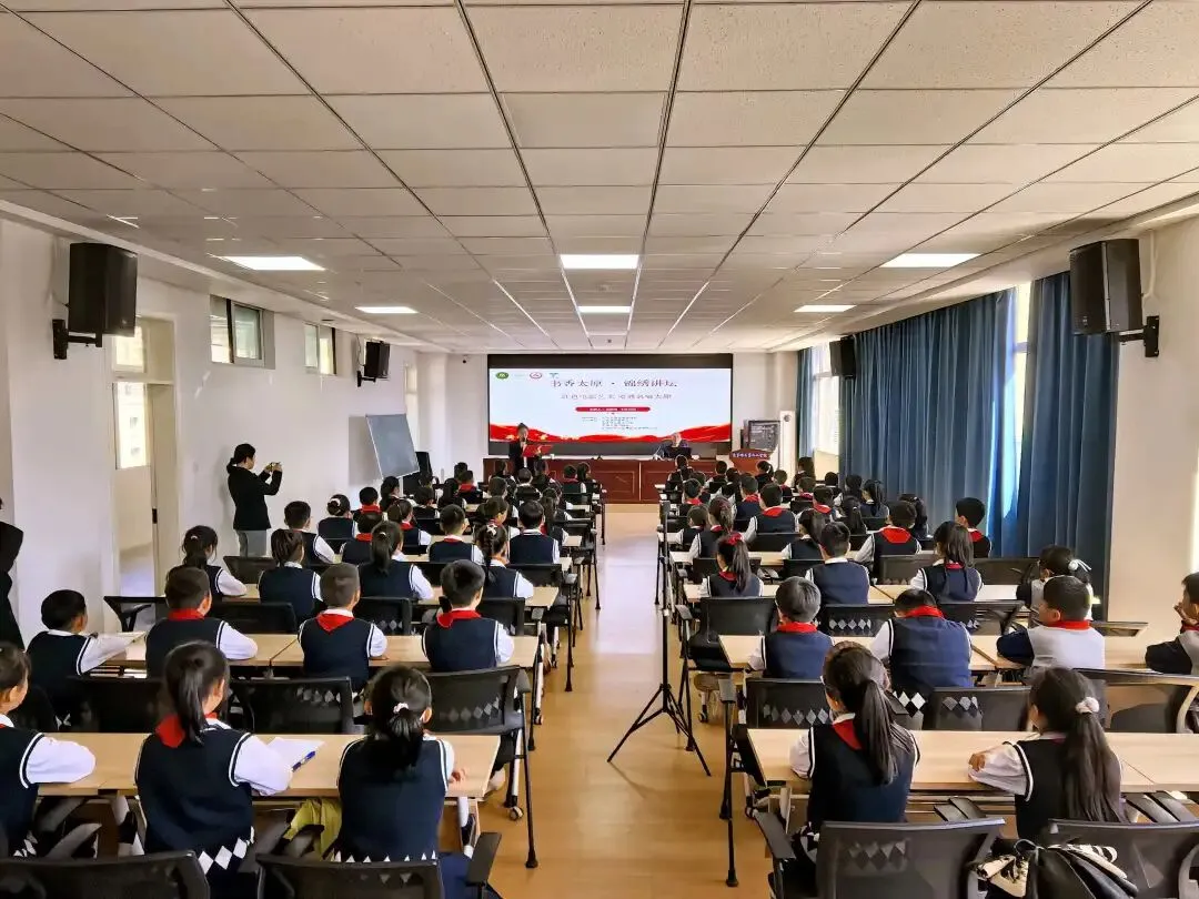 4月10日下午,由中共太原市委宣传部指导、太原市读书协会举办的“书香太原·锦绣讲坛”暨山西省作家协会“新时代作家大讲堂”走进尖草坪区第五小学,本次活动以“红色电影艺术 境遇名城太原”为主题,特邀中国作家协会会员、国家艺术基金专家评委、第七届太原市作家协会主席王宏伟作红色电影艺术专题分享。师生们在光影中品读太原红色故事,于书香里传承城市精神。
