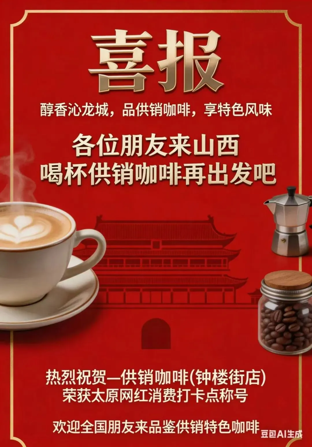 热烈祝贺供销咖啡(钟楼街店)荣获太原网红消费打卡点称号