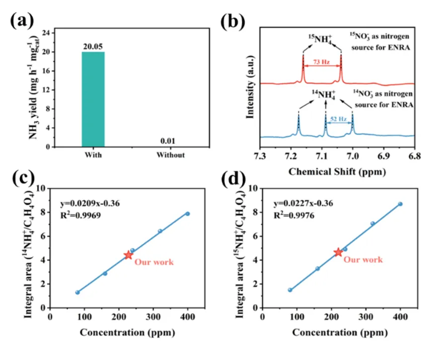 3. 同位素标记实验使用¹⁵NO₃⁻作为氮源,¹H NMR谱图仅检测到¹⁵NH₄⁺信号,证实产物氨完全来源于硝酸盐还原而非其他氮源