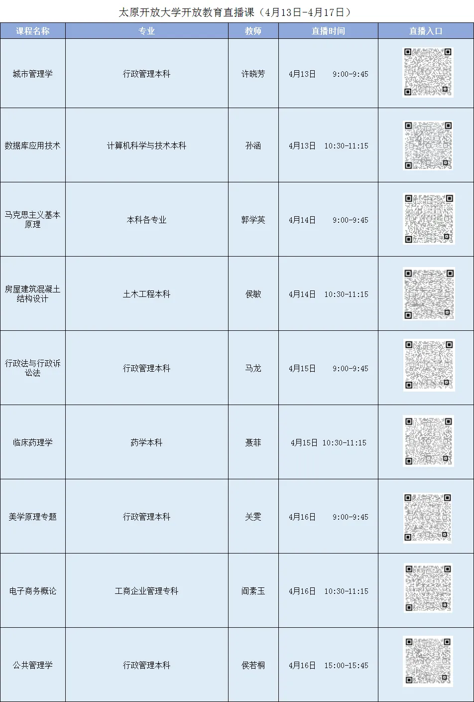 亲爱的同学们,太原开放大学2026年春季开放教育直播课@你啦!学校精心准备,为你们量身打造了涵盖不同专业领域、适应不同教育层次的丰富课程!快来加入我们,一起探索知识的奥妙,享受学习的无限乐趣吧!