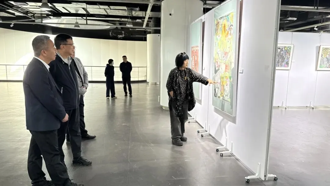 范兆森市长与卢宇鸿、钱宇华两位副校长认真观看了葛水平主席创作的139幅绘画作品,与葛水平主席共同交流了作品的创作背景、表现语言、艺术感受及作品内涵,对葛水平主席扎根人民、感受生活、立足本土的艺术创作方式予以肯定,认为作品既有独立的艺术思考,又有现实的生活温度,体现了艺术工作者的责任担当。在观看过程中,范兆森市长对我院发展提出希望,副院长张桐源表示:我院将进一步完善人才培养模式,提升学生艺术创作素养,推进美育社会服务能力,深化校地协同建设,助力区域文化大发展。