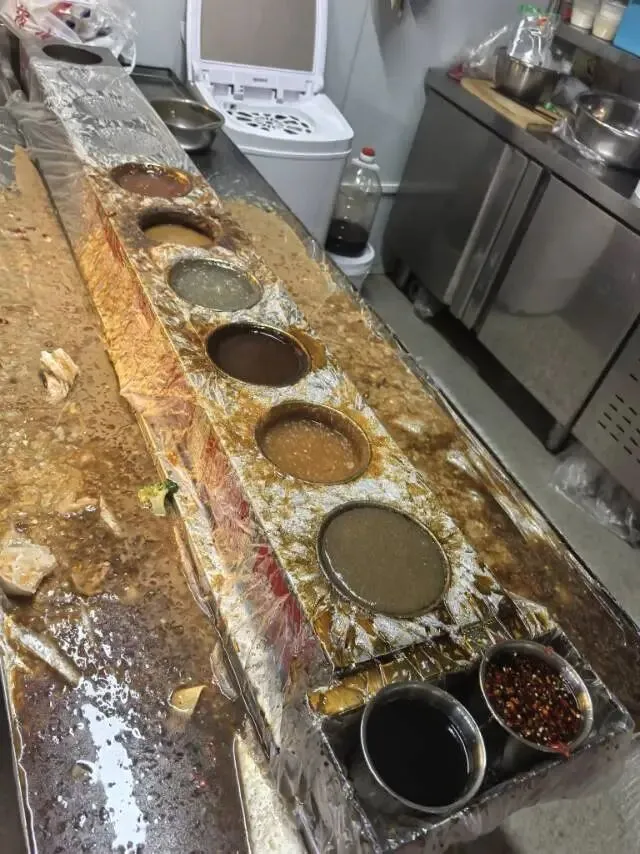 赶忙问了老板才明白,所有串串都是提前煮熟的,直接蘸上桶里的秘制料汁就能吃,而且几桶料汁是大家共用的哈哈