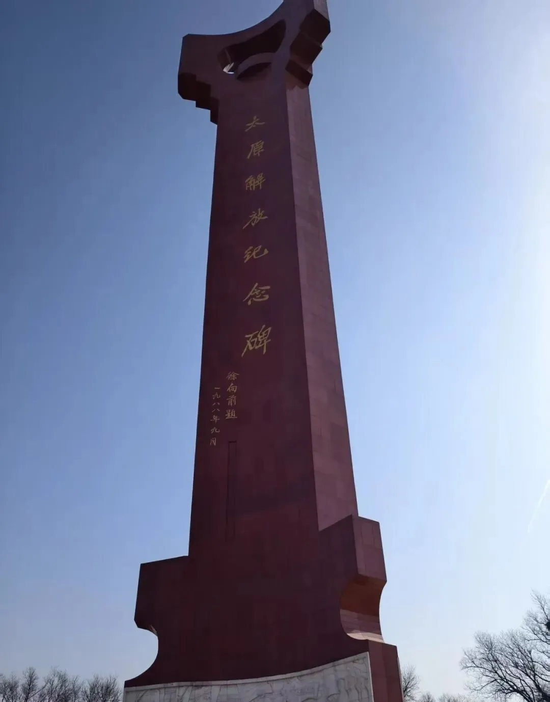 这是一种庄严而深沉的暗红。太原解放纪念碑,像一把巨大的钥匙,矗立在东山之巅。它由暗红色花岗岩砌成,象征着1949年4月24日太原解放的热血与荣光。徐向前元帅亲笔题写的鎏金大字,在蓝天映衬下熠熠生辉。这抹红,是历史的见证,是无数先烈用生命换来的和平底色,提醒着我们“胜利来之不易”。