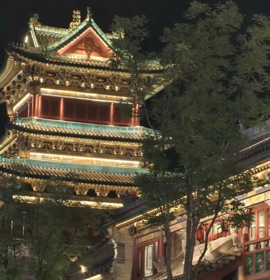 这是一种典雅而辉煌的朱红。在晋祠,红柱与青瓦相映,是宋式建筑的沉静之美的体现;在钟楼街的夜色里,红墙被暖光勾勒,飞檐斗拱更显恢弘。这抹红,是千年古建的脊梁,承载着晋阳古城的厚重历史,诉说着“华夏文化,源远流长”。