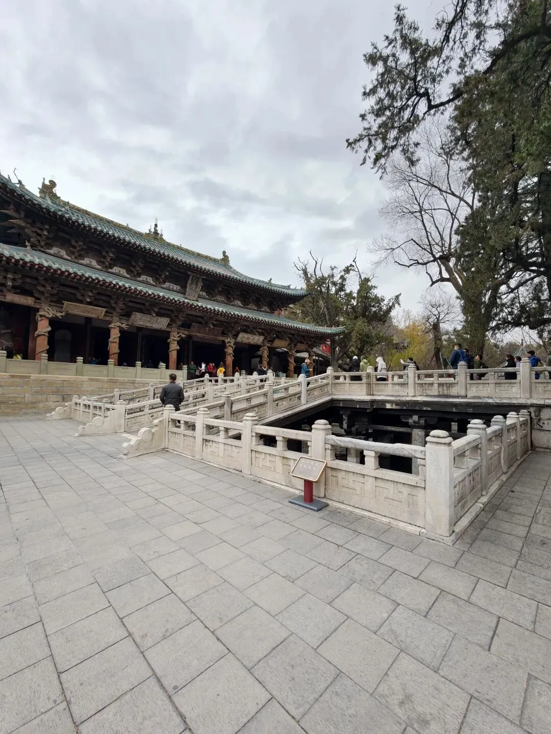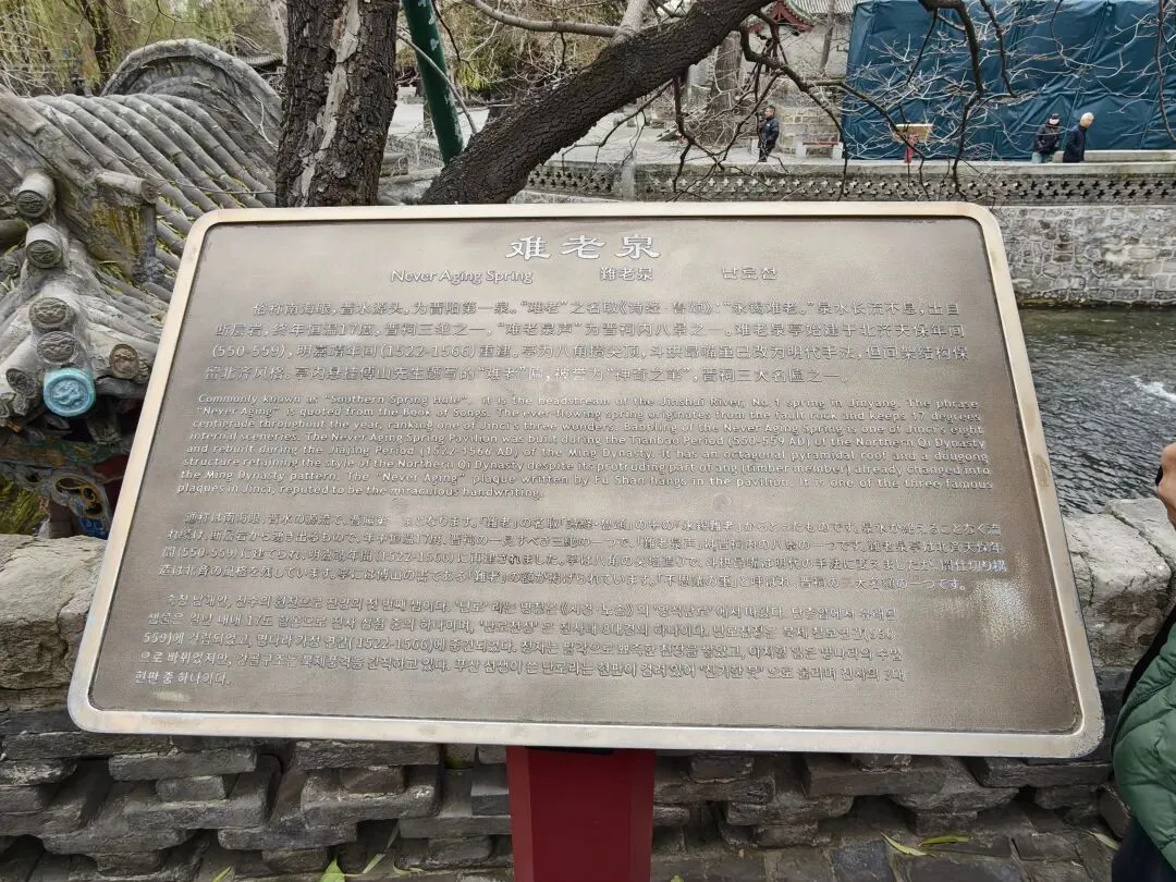 中国人讲究风水,而所谓风水宝地自然依山傍水。而在晋祠,真正让这座“历代建筑博物馆”跨越千年仍生机勃勃,靠的正是难老泉的滋养。它是晋水的源头,水温常年稳定在17到18度,晋祠百分之八十的活水都来自这里。正因为有难老泉的千年陪伴,哪怕我们11月底到访,都能看到晋祠的草木依然透着动人的绿意。