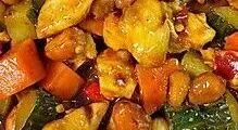 副食:佛手瓜炒肉、西红柿炒茄丝、蘑菇油菜