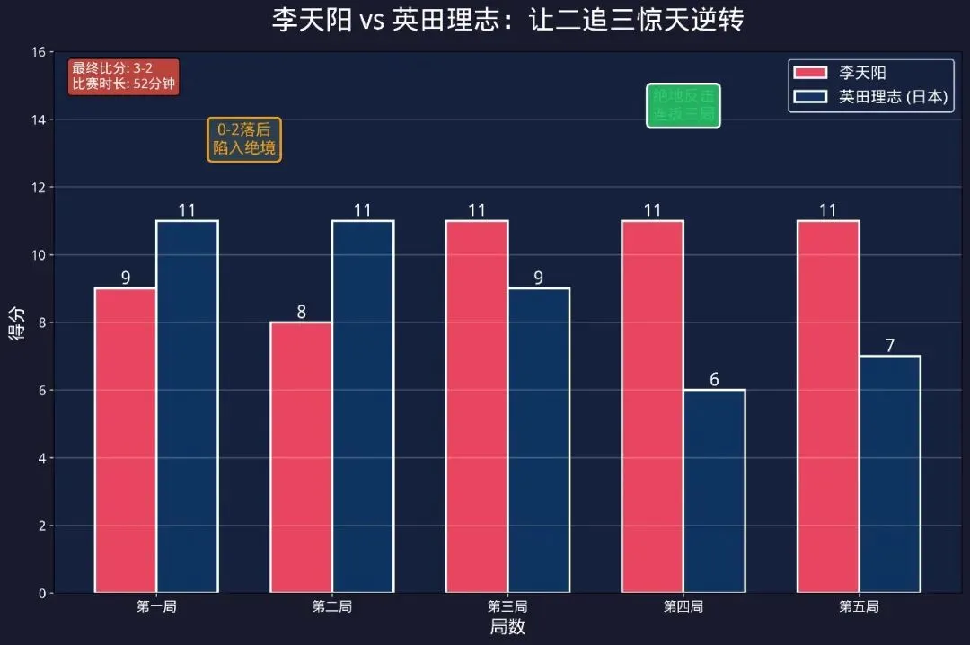 让二追三惊天逆转、19分钟横扫日本新星、国乒内战鏖战五局——这个削球少年,用三场经典战役,完成了从无名之辈到全场焦点的蜕变。