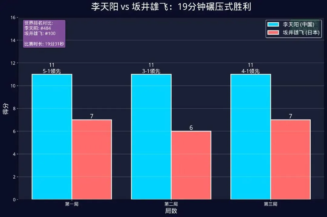 坂井雄飞以快攻打法著称,但在李天阳多变的旋转面前,他的速度优势荡然无存。