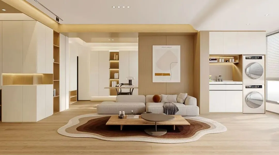 大平层的“贵”,贵在看不见的地方。我们将中央空调、新风系统等设备完美隐藏,只留下极简的出风口。厨房电器全部采用嵌入式设计,与橱柜面板齐平。客厅的电视墙可能就是一整面储物柜,通过无拉手设计,将所有功能悄然收纳。这种“无形”的设计,让空间回归纯粹的舒适与宁静,这才是真正的奢侈。