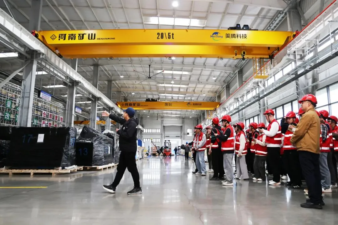 下午,师生们转场至美腾科技生态城制造基地,依次参观了公司现代化展厅、智能远控中心以及自动化生产车间,深入了解了美腾科技从技术研发到产品制造的全链条创新体系。