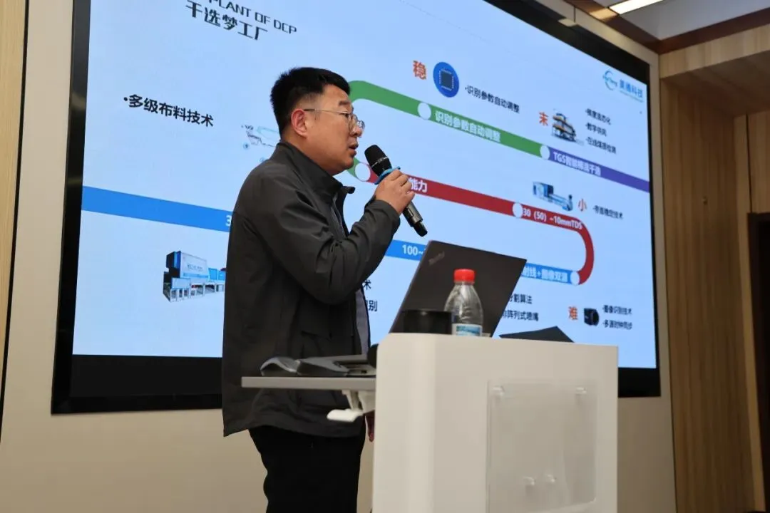 美腾科技技术人员首先围绕干选梦工厂的核心产品——TDS智能干选机与TGS智能梯流干选机进行了系统介绍。TGS与TDS搭配形成的全粒度级、全干选工艺,不用水、不耗介、不产生煤泥,全流程智能化运转,形成了集感知、分析、决策、执行一体化的智能干选梦工厂。