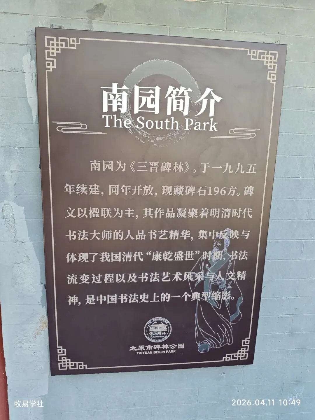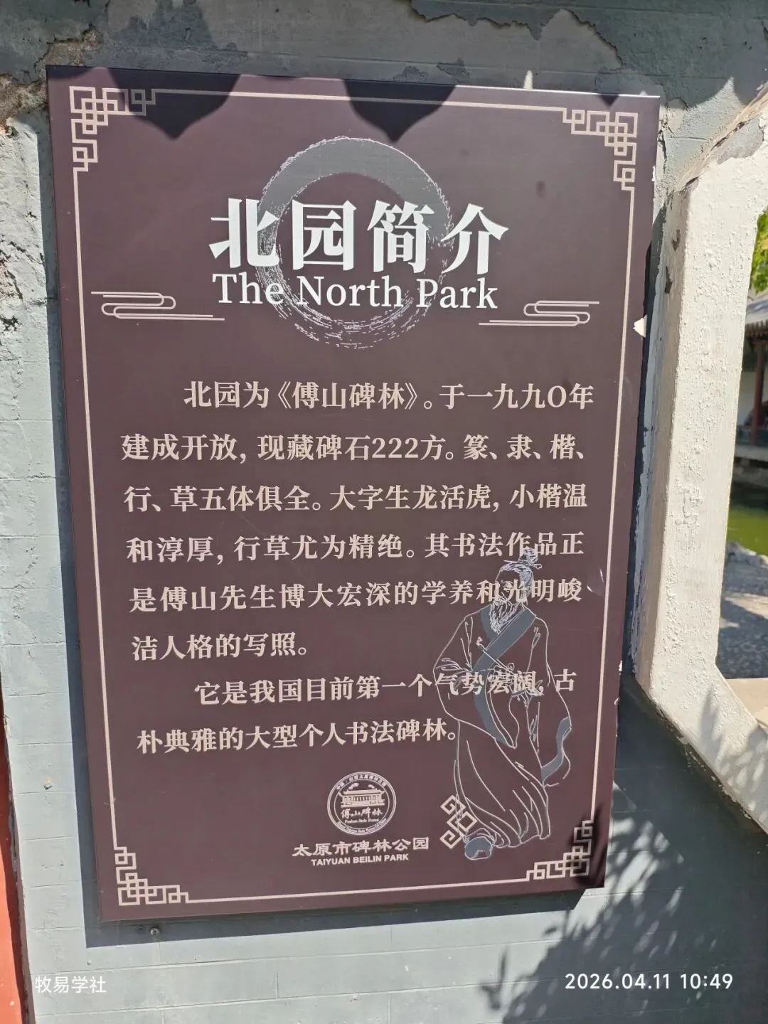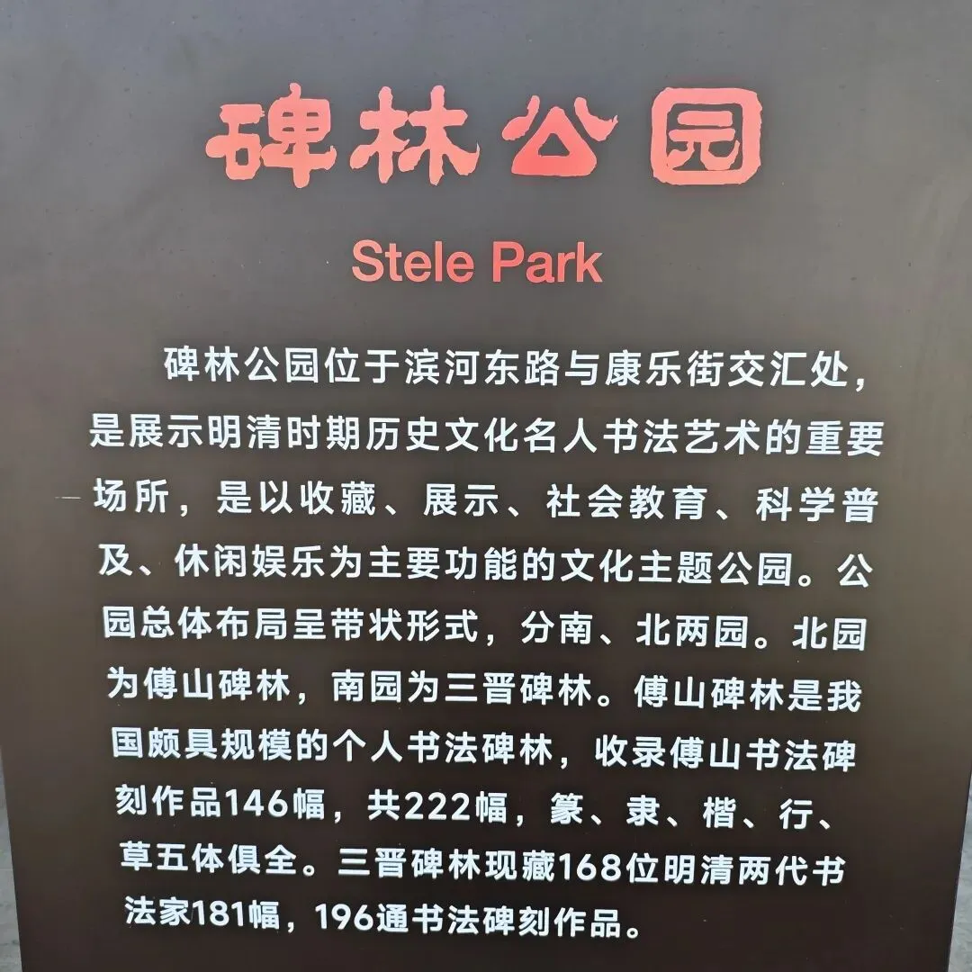 碑林公园核心分为北园(傅山碑林)与南园(三晋碑林):