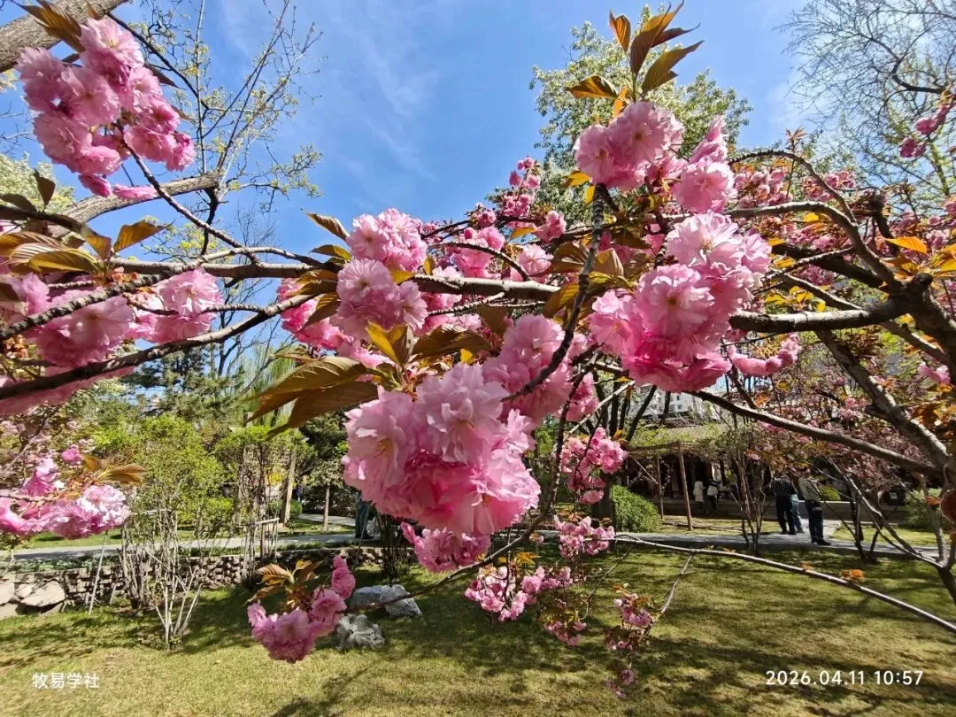 春季(3-4月)北园玉兰、南园连翘、樱花相继盛开,百花争春;夏季(5-8月)南园池塘睡莲绽放,荷花亭亭;秋季(9-11月)银杏金黄,枫叶似火,色彩斑斓;冬季(12-2月)雪覆松柏,红墙映雪,意境独特。