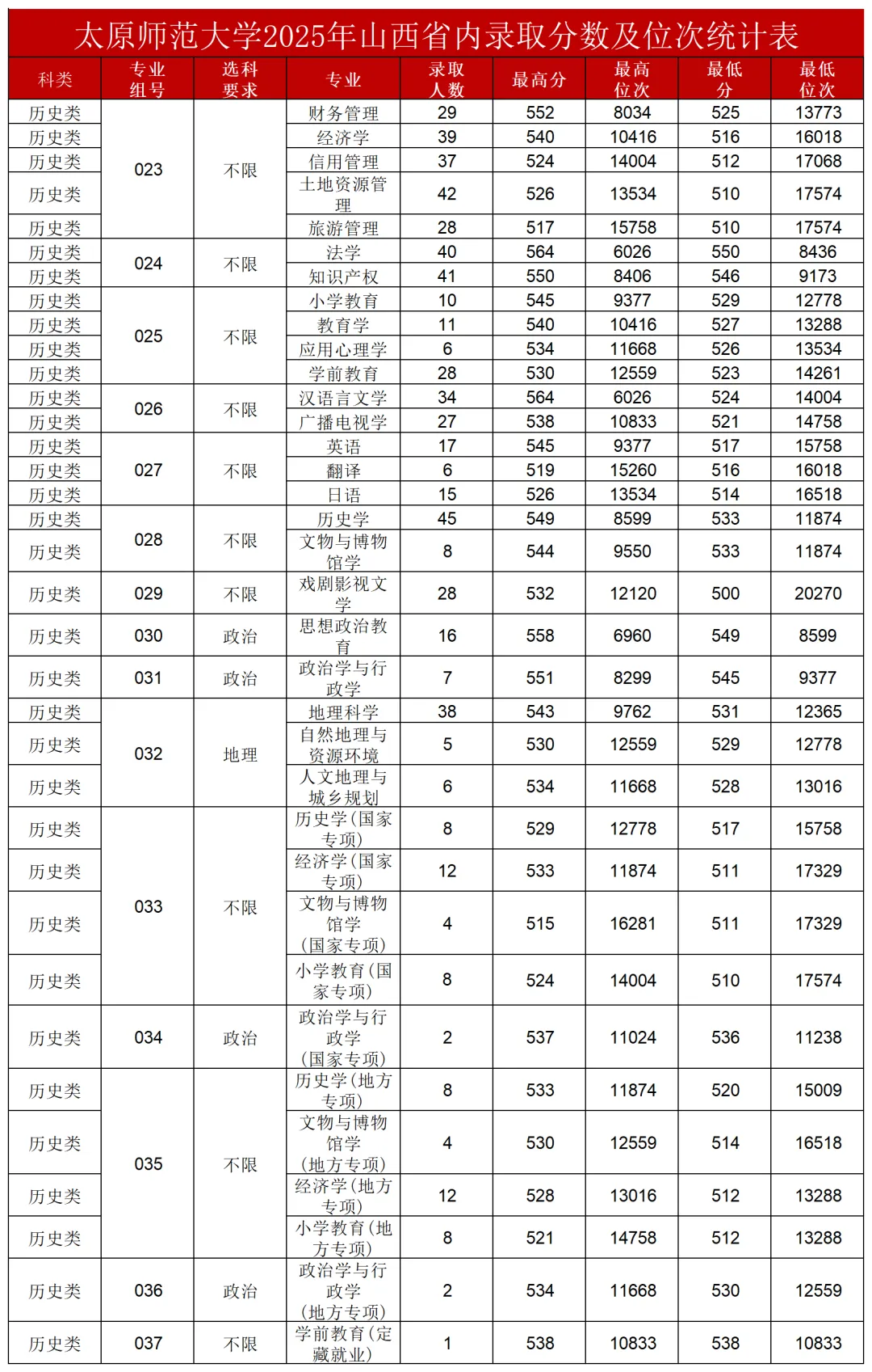 2025 年太原师范大学历史类专业录取呈现明显的分层特征: