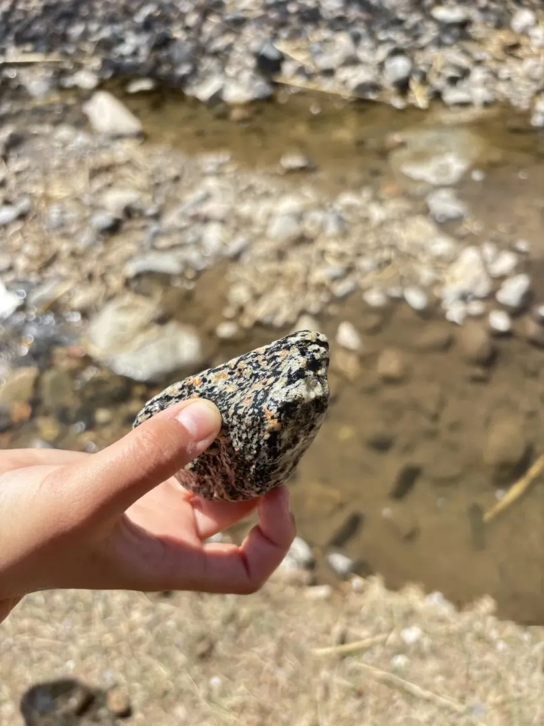下车后大约一百米就看到了小溪流,满是石子的小溪流,水很清,石头很漂亮,花岗岩,石英石特多,带云母的黑色花岗岩很多,阳光下一闪一闪非常漂亮,带着孩子光捡石头也乐趣十足。