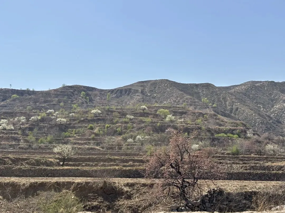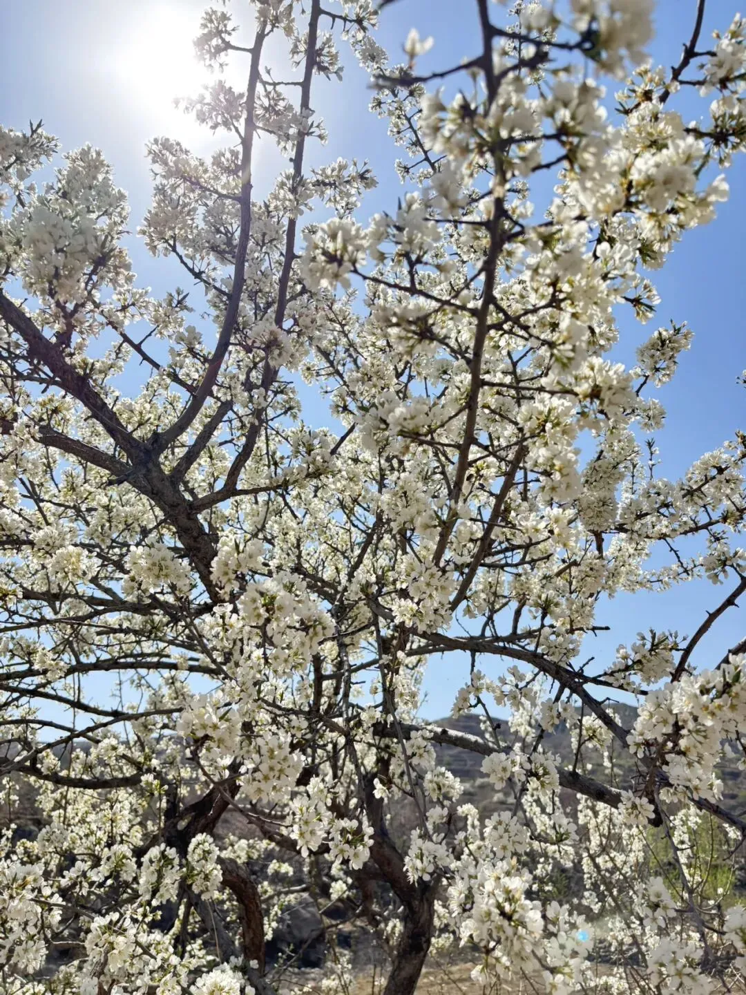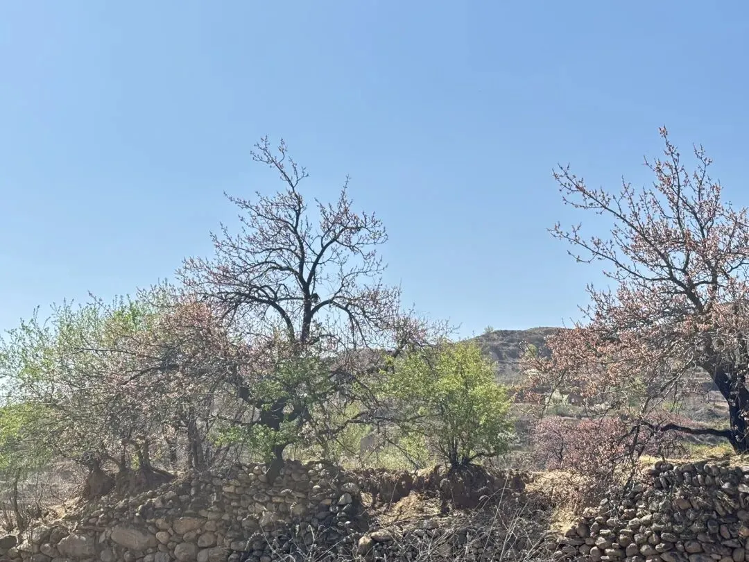 沿着溪流一路往西,坡度不是很大,对于带孩子的家庭特别友好,溪流两边杏树,核桃树居多,也有李树和梨树,杏花已经凋谢,核桃树刚刚发芽,只有雪白的梨花抑或李花还在盛放。