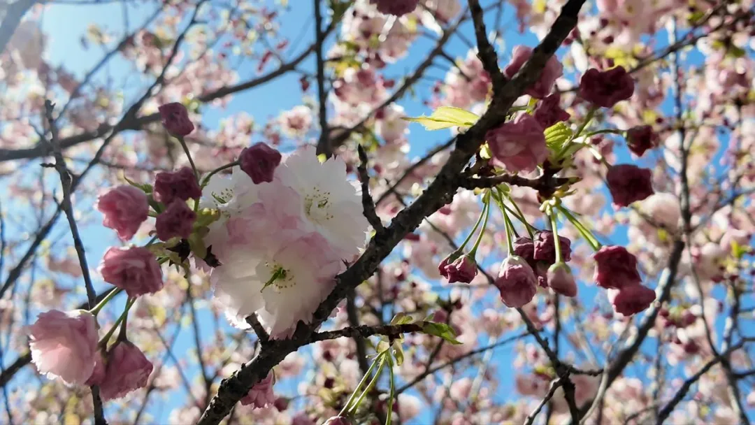 4月10日上午,记者来到和平公园,在节日广场、东门广场周边看到,各品种樱花全都迎来盛花期,松月樱,花先浅红后变近白色,瓣约30枚;普贤象樱,花全开时变白色,其他时段为淡红色,因像普贤菩萨乘坐的大象象牙而得名;关山樱,浓红色,瓣约30枚,是晚樱最美的品种之一……一团团、一簇簇,如烟似霞。游客徜徉花海,春风拂过“落樱”缤纷,一派唯美浪漫的春天景象。