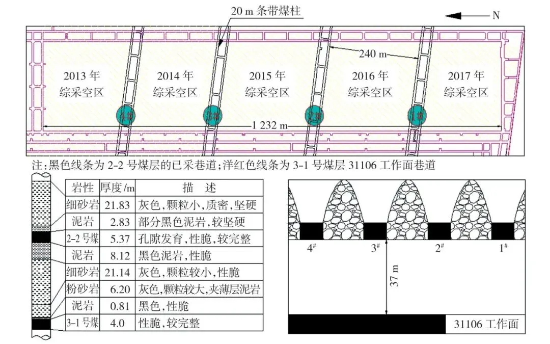 Fig.2 Mining position of 31106 working faceadvance under coal pillar