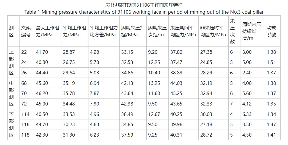 关键词:遗留煤柱;支架阻力;动载系数;矿压特征;水力压裂