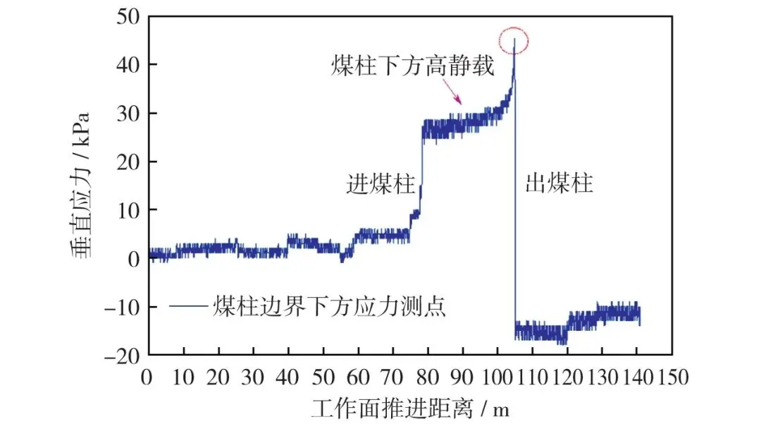 图9煤柱边界下方测点应力变化