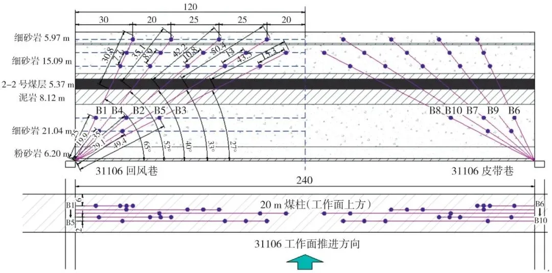 Fig.10 Drillhole layout scheme of the hydraulic fracturing in the barrier pillar region