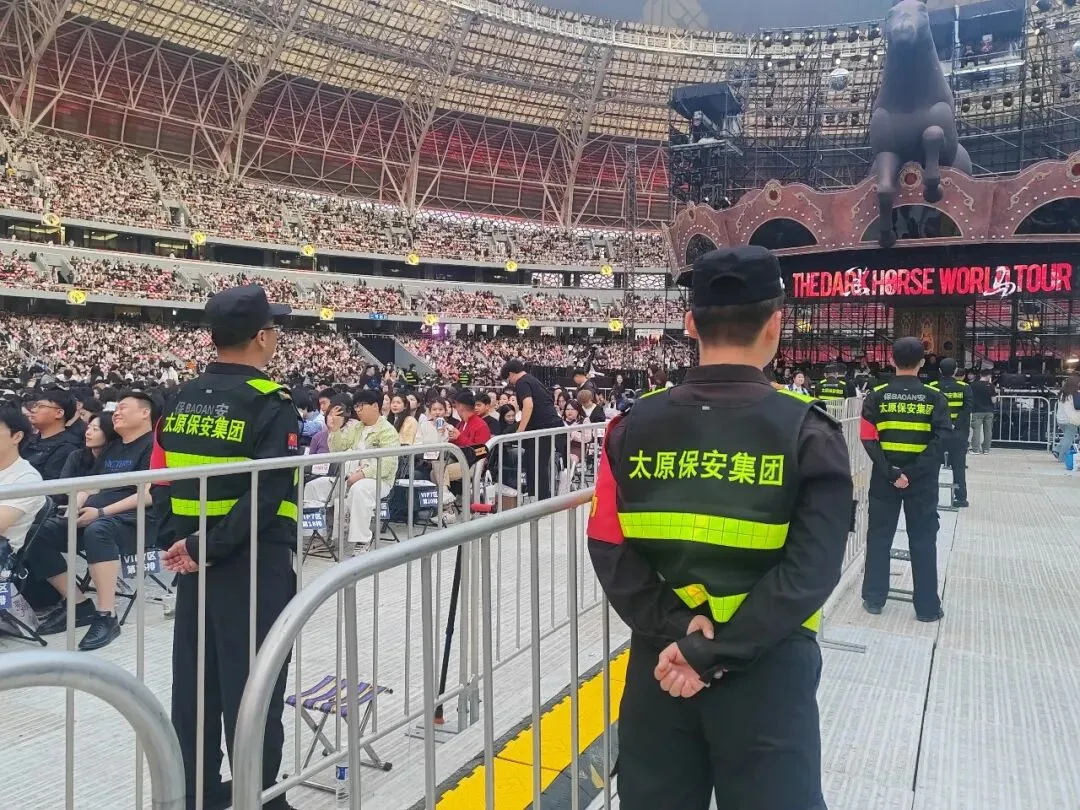 4月11日晚,李荣浩「黑马」世界巡回演唱会太原站在山西体育中心红灯笼体育场如期举行。作为2026年“歌迷之城”太原首场大型演唱会,此次活动备受社会关注。与此同时,CBA男篮赛事同步也在汾酒体育馆举办,两场大型文体活动同日同时开展,使得体育中心现场人流密集、安保任务叠加,工作难度大幅提升。太原保安集团党委高度重视、提前谋划、周密部署,凭借专业高效的安保服务、科学合理的人员调配,全力筑牢安全防线,圆满完成两场活动安保工作,彰显了国企安保队伍的责任与担当。