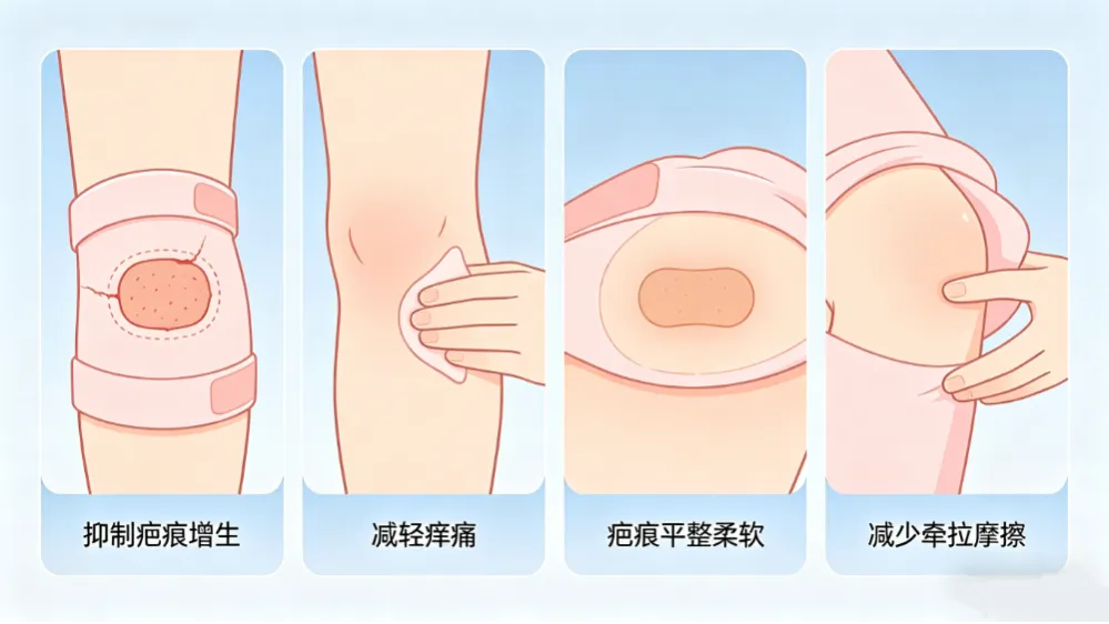 压迫后疤痕血管收缩,能明显缓解术后常见的发红、发痒、刺痛。