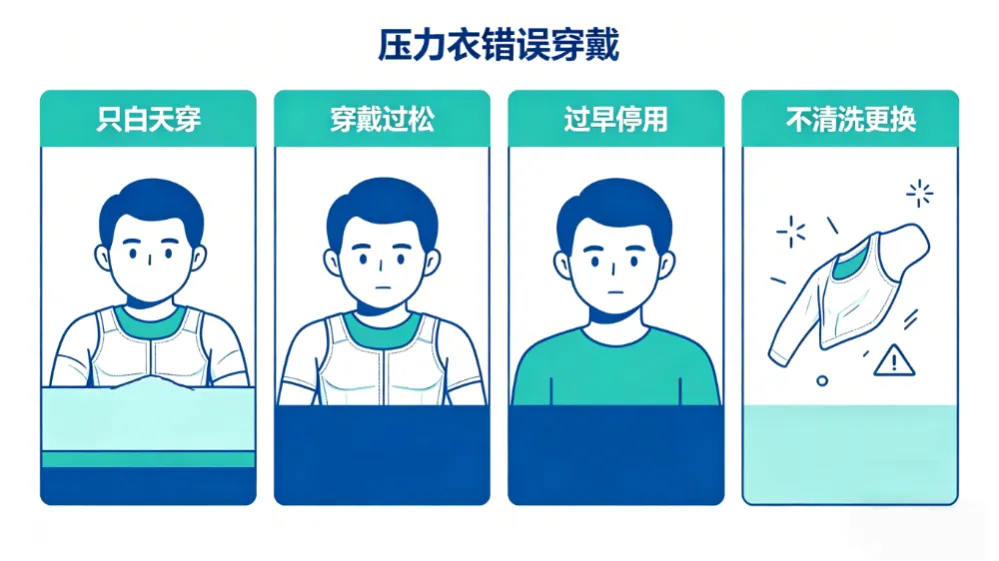 ❌ 只在白天穿,晚上脱掉 → 压力不持续,几乎白穿