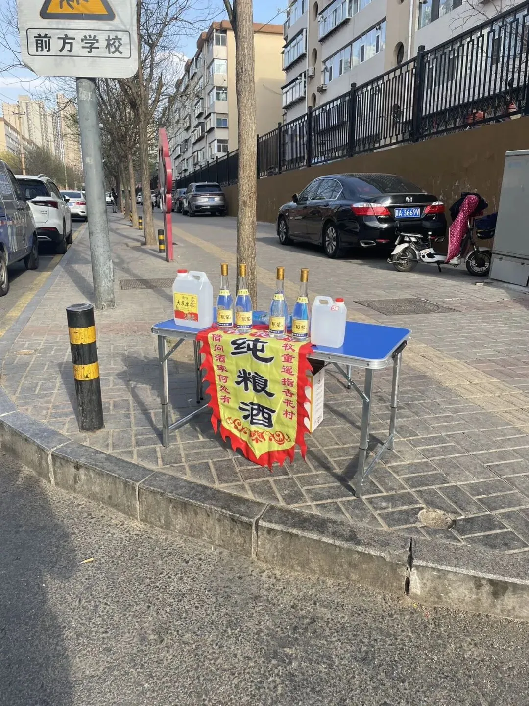 没有华丽的包装,没有夸张的宣传,一张折叠桌、几瓶透亮的原浆、一面印着“借问酒家何处有,牧童遥指杏花村”的酒旗,就把山西汾阳杏花村的千年酒香,完完整整搬到了太原人的家门口。
