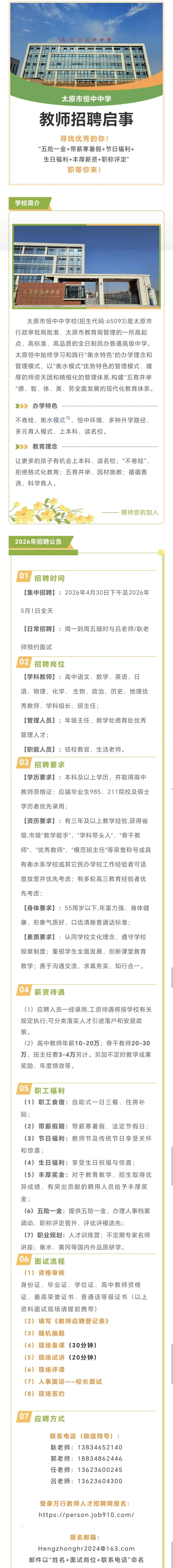 >太原市恒中中学2026年招聘公告