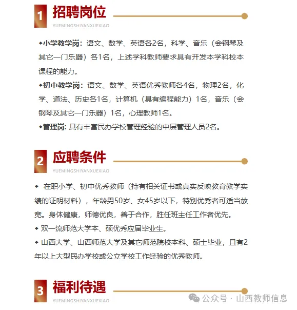 五险;教师公寓(拎包入住);享受一年四季免费游泳、健身;教师子女就读优惠;带薪寒暑假;享受法定节假日、体检、节日福利、太原住地的教师每周两次往返通勤等。