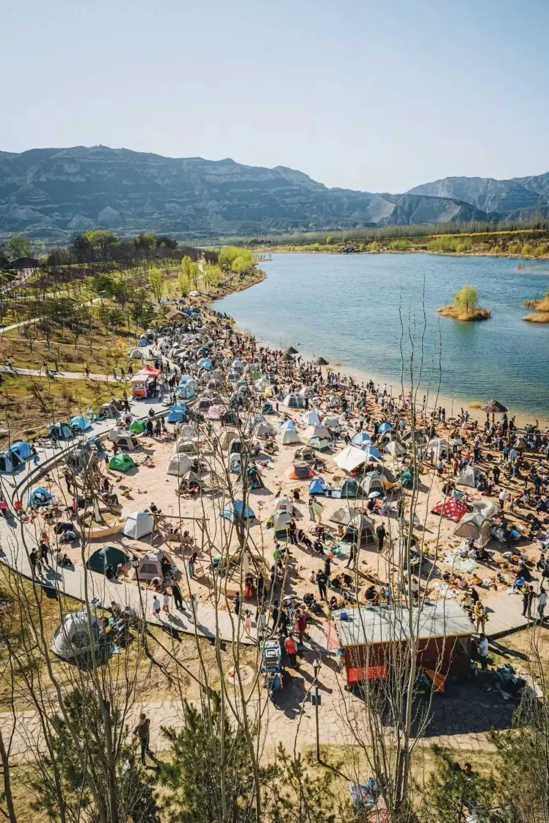 最近,你的朋友圈是不是也被汾河四期的沙滩露营视频刷屏了?镜头里,五颜六色的帐篷在小沙滩上“绽放”,好友们围炉煮茶、谈笑风生,孩子们在暖阳下肆意奔跑。这种溢出屏幕的松弛感,正是山西春天的正确打开方式。图源:小红书@rockpanda📷